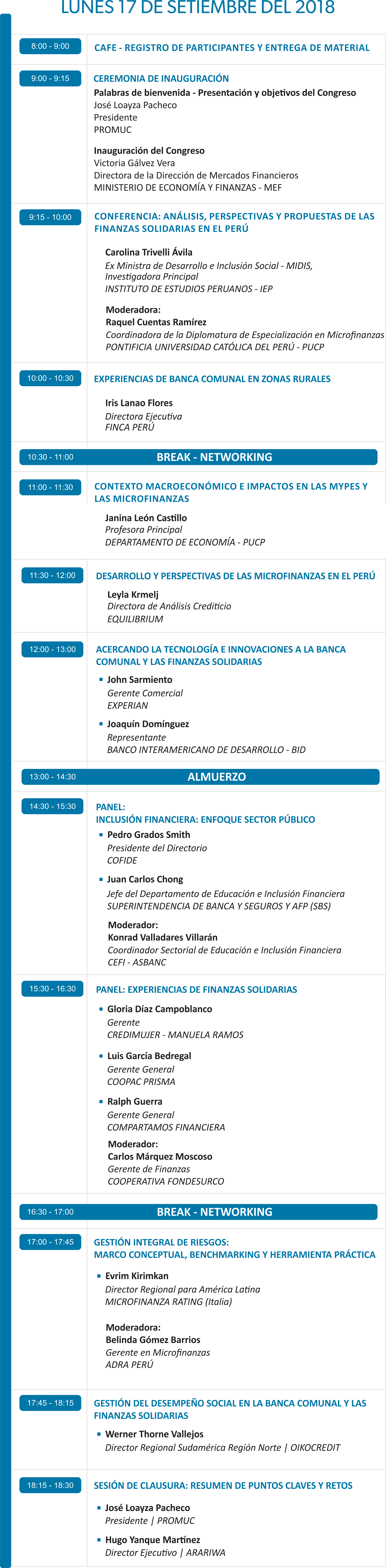 Este importante evento convocará anualmente a destaccados especialistas nacionales e internacionales para presentar y analizar los avances, nuevas tendencias, problemática, experiencias exitosas, tecnología, evolución y crecimiento de la Banca Comunal y las microfinanzas.